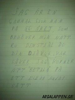 Den här lappen hittades i trapphuset till ett lägenhetskomplex i Alicante. Sludis och hans roomies utgjorde vid tidpunkten det enda icke-spansktalande hushållet i byggnaden och kände sig givetvis smickrade över att lappskrivaren tänkt på den etniska aspekten.
