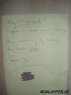 Det finns få ställen där användandet av arga lappar fått en större genomslagskraft än i hjärtat av våra svenska studentbostäder, korridorsköken. En stulen leverpastej kan utan problem bli till skottet i Sarajevo.