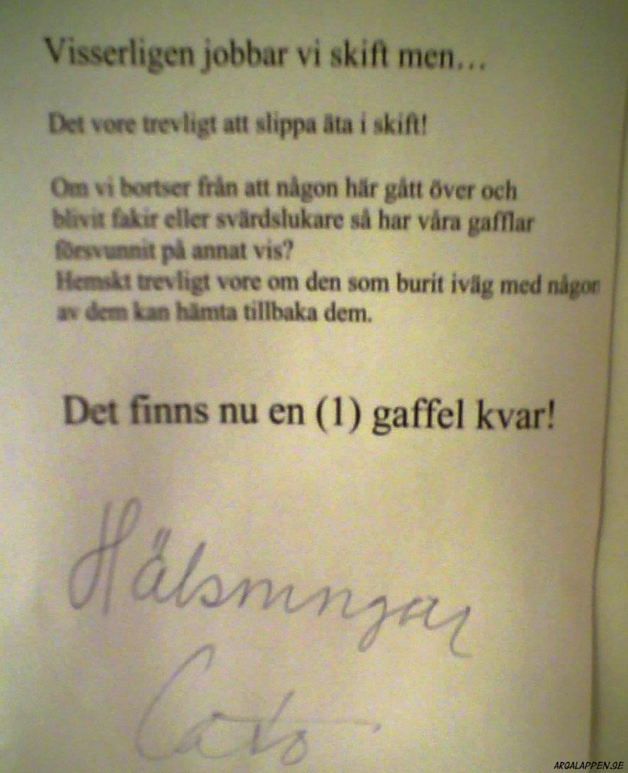 Om vi bortser från att någon här gått över och blivit fakir eller svärdslukare så har våra gafflar försvunnit på annat vis?