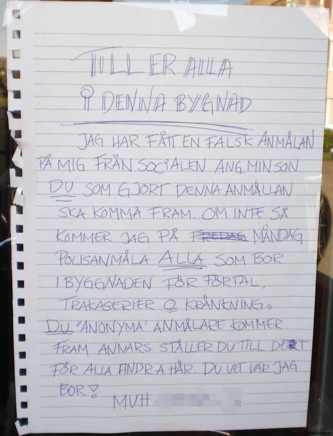 Inledningen på den här lappen är bara så otroligt härlig. Inga krussiduller, inga ursäktande ordvändningar... Håkan är helt enkelt jävligt förbannad. Punkt.