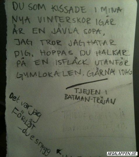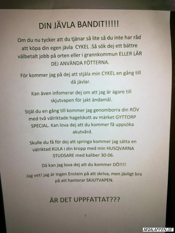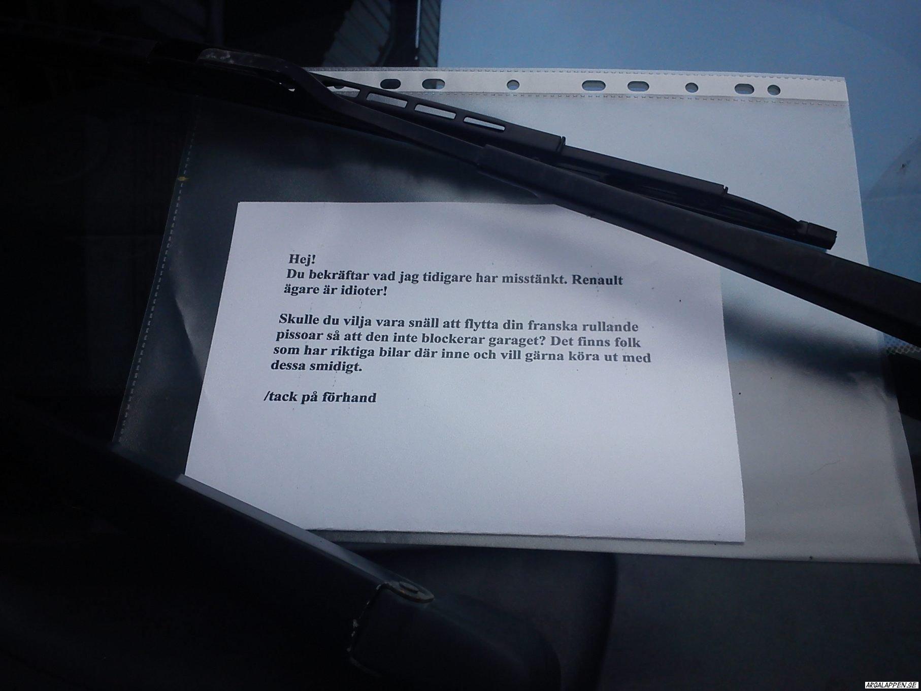 Notera att lappskrivaren kostat på sig en plastficka för att säkerställa att meddelandet går fram i händelse av nederbörd.