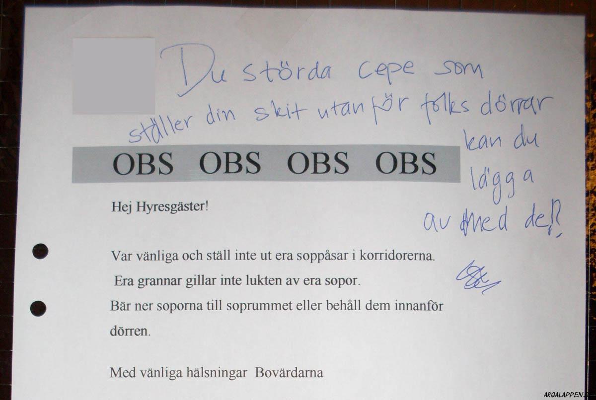 Arga Lappen är en blogg som frossar i de där små subtila budskapen vi människor kommunicerar med i köket, i förrådet, i tvättstugan, ja i princip överallt där vi delar utrymme och umgås (eller inte) med andra.