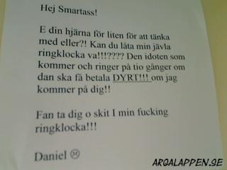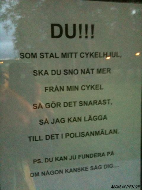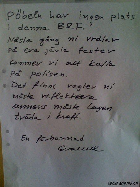 Till saken hör att lappen hittades på Östermalm i Stockholm.