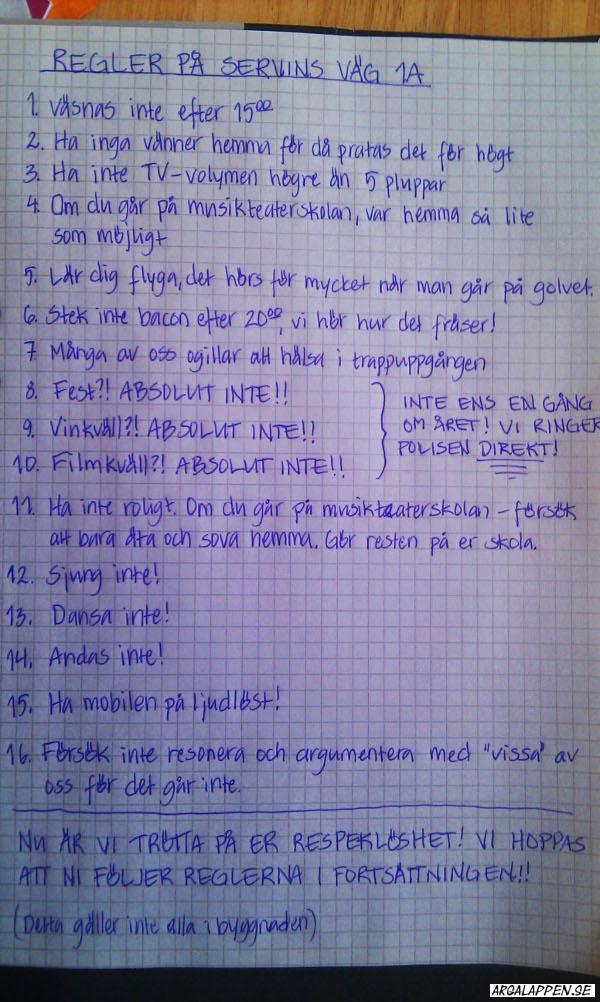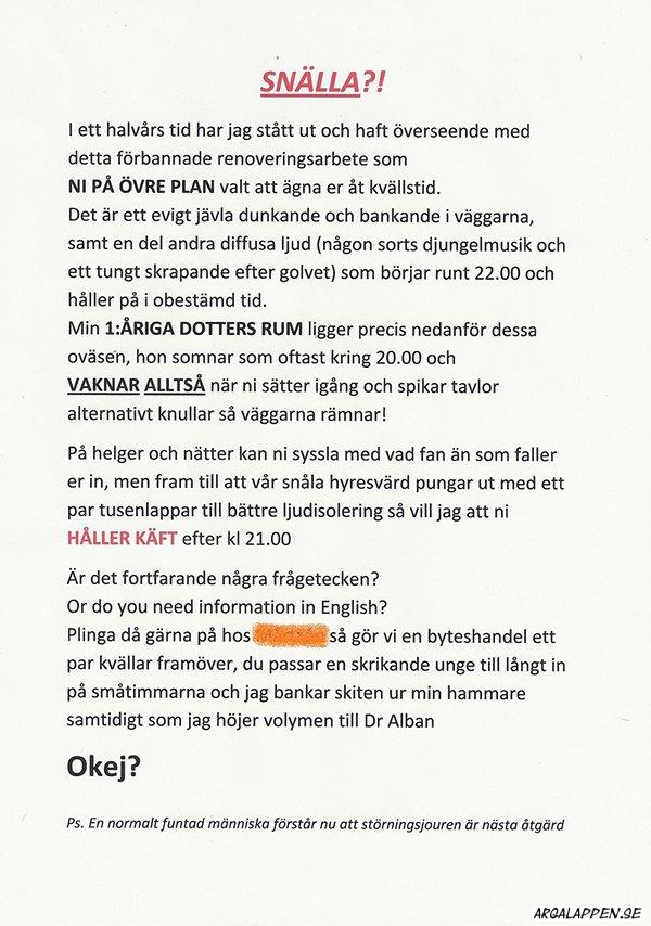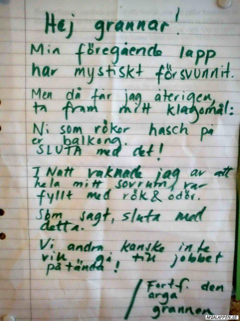 Lappen är inte så arg direkt men vi publicerar den pga att lappen hittades och skickades in av Mammans son och kompis. Kymigt läge vid middagsbordet ikväll?