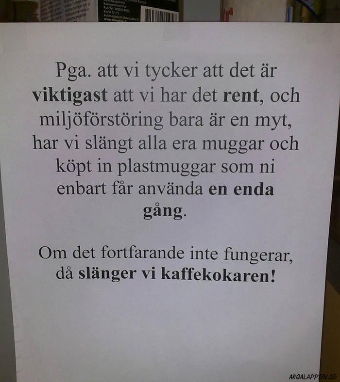 Det är inte lappen jag flabbar åt, utan alla underbart roligt insnöade, ironiska och härligt arga kommentarer till denna lapp!