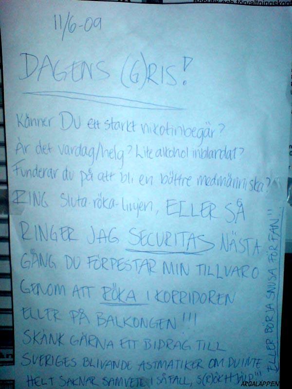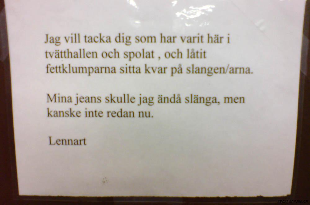 Arga Lappen är en blogg som frossar i de där små subtila budskapen vi människor kommunicerar med i köket, i förrådet, i tvättstugan, ja i princip överallt där vi delar utrymme och umgås (eller inte) med andra.