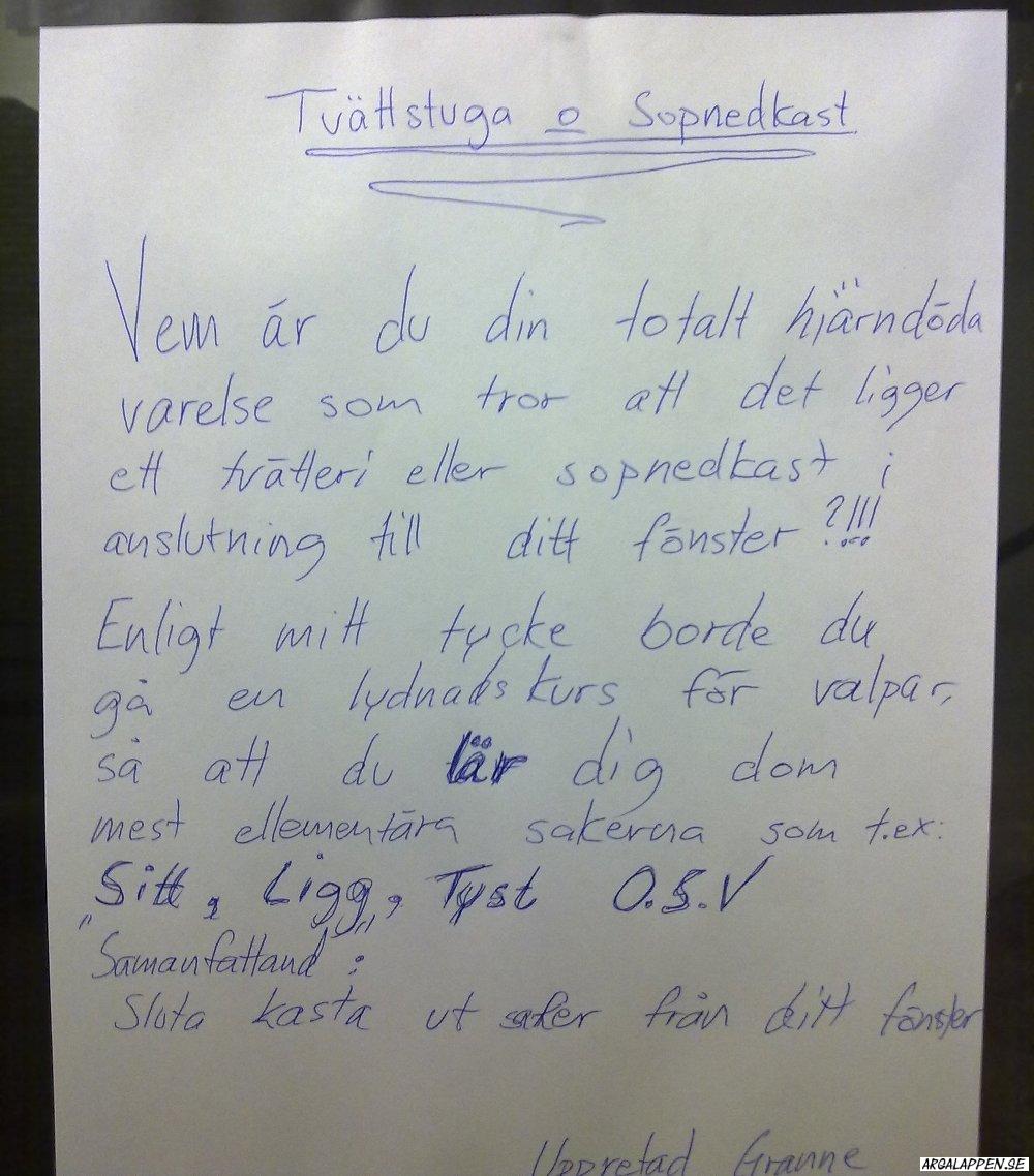 Arga Lappen är en blogg som frossar i de där små subtila budskapen vi människor kommunicerar med i köket, i förrådet, i tvättstugan, ja i princip överallt där vi delar utrymme och umgås (eller inte) med andra.