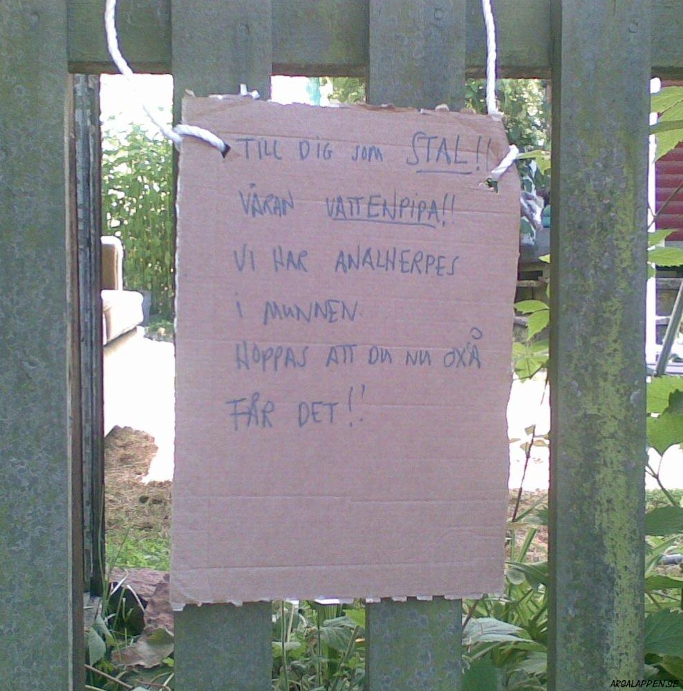 Vad ni än hade kunnat tänkas göra med vattenpipan så var STJÄLA det värsta.