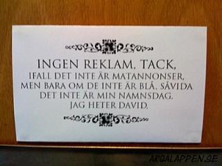Svensk Direktreklam omorganiserar och söker nya kvalificerade utdelare som kan skilja på mat och annat. Meriterande är om du kan alla svenska namnsdagar utantill. Färgblindhet är direkt diskvalificerande.