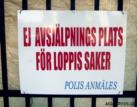 "Vänligen respektera ovanstående då detta orsakar stopp i toaletterna vilket innebär en sanitär oangelägenhet för personalen."