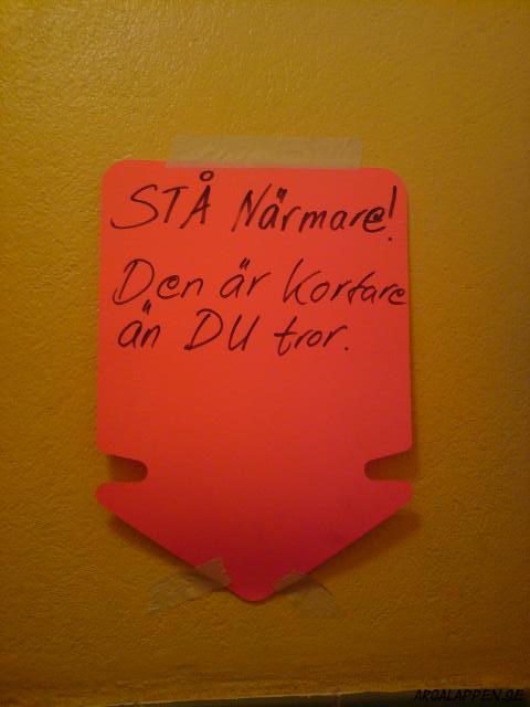 Du som trots alla varningar om prostatabesvär står och pinkar. TA ETT STEG NÄRMARE! Den är mycket kortare än du inbillar dig!"
