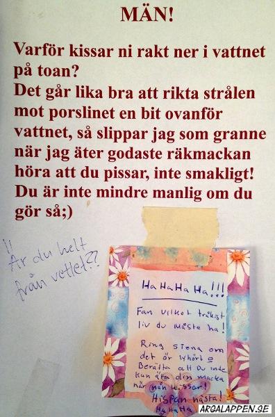 Arga Lappen är en blogg som frossar i de där små subtila budskapen vi människor kommunicerar med i köket, i förrådet, i tvättstugan, ja i princip överallt där vi delar utrymme och umgås (eller inte) med andra.
