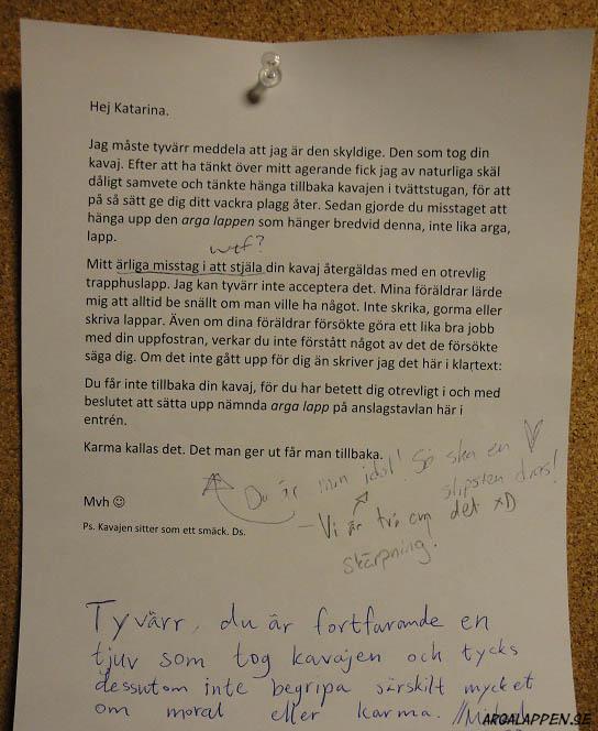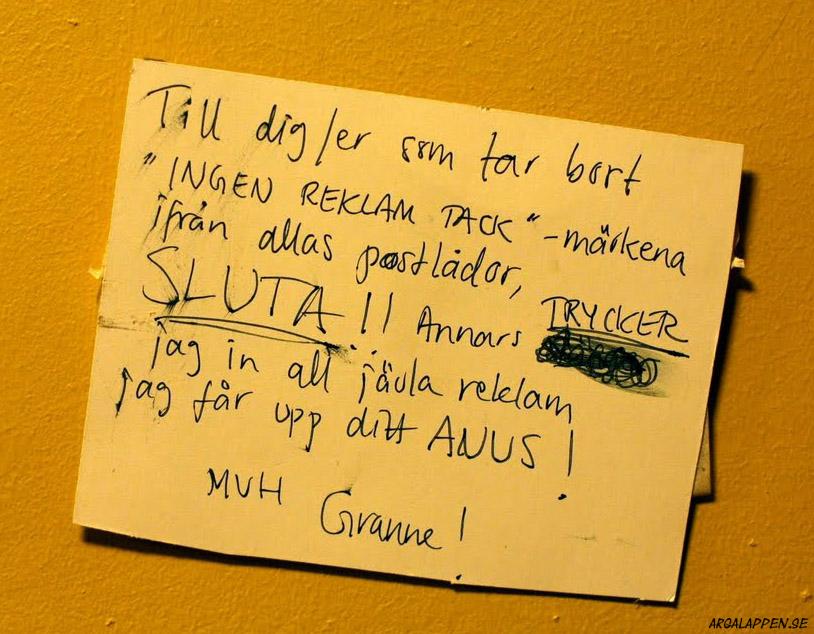 Arga Lappen är en blogg som frossar i de där små subtila budskapen vi människor kommunicerar med i köket, i förrådet, i tvättstugan, ja i princip överallt där vi delar utrymme och umgås (eller inte) med andra.