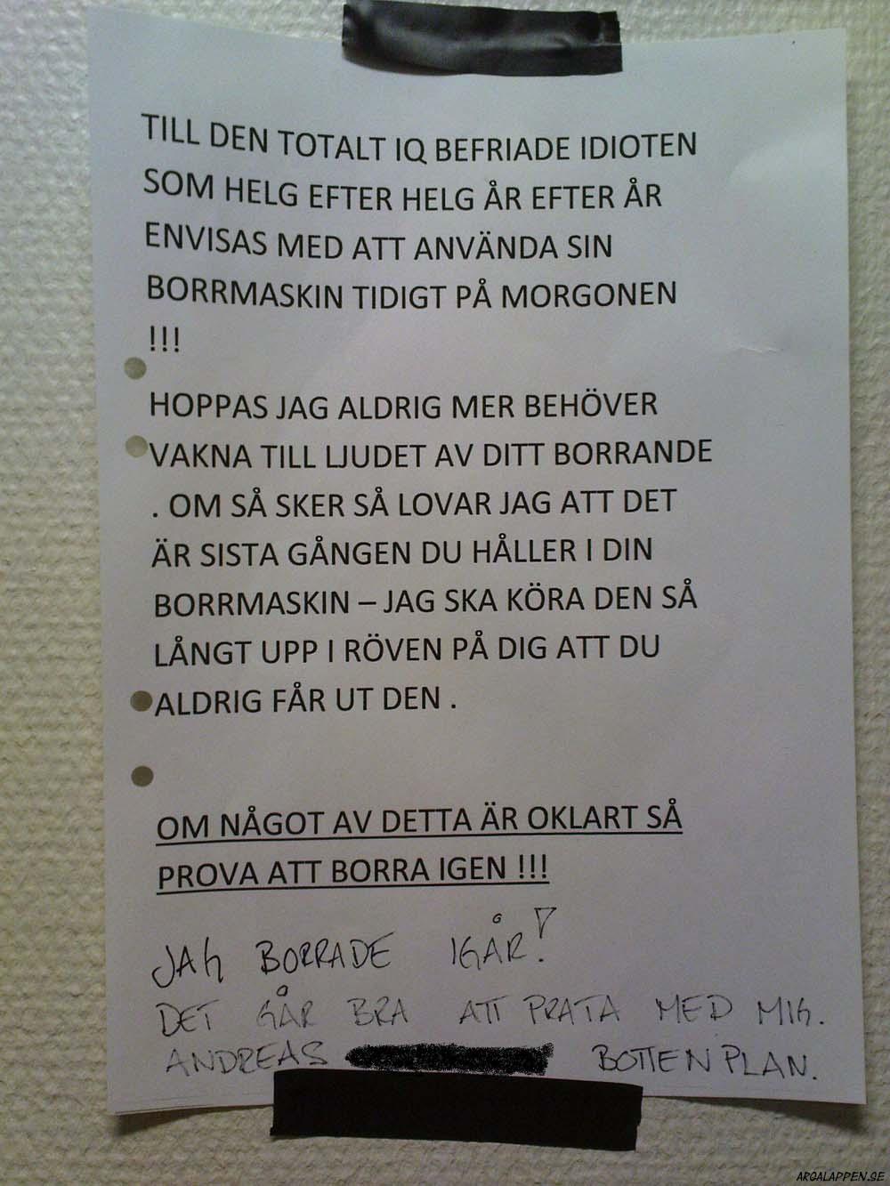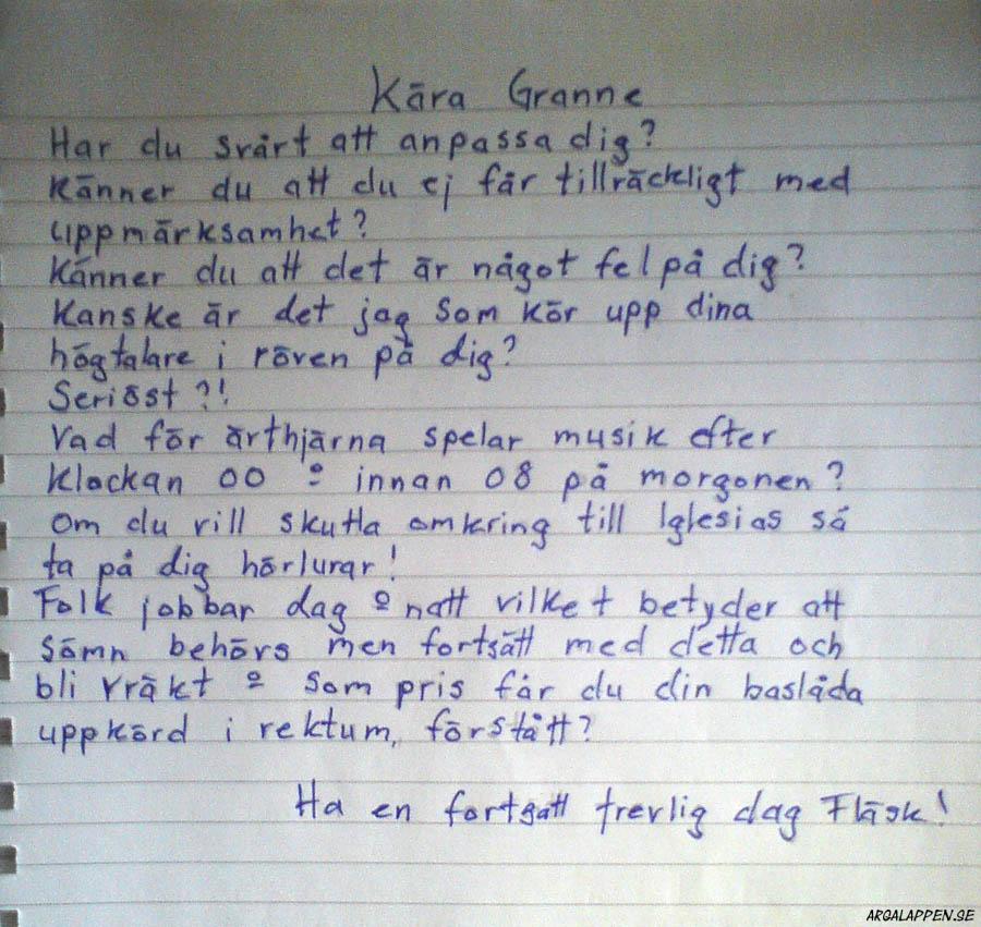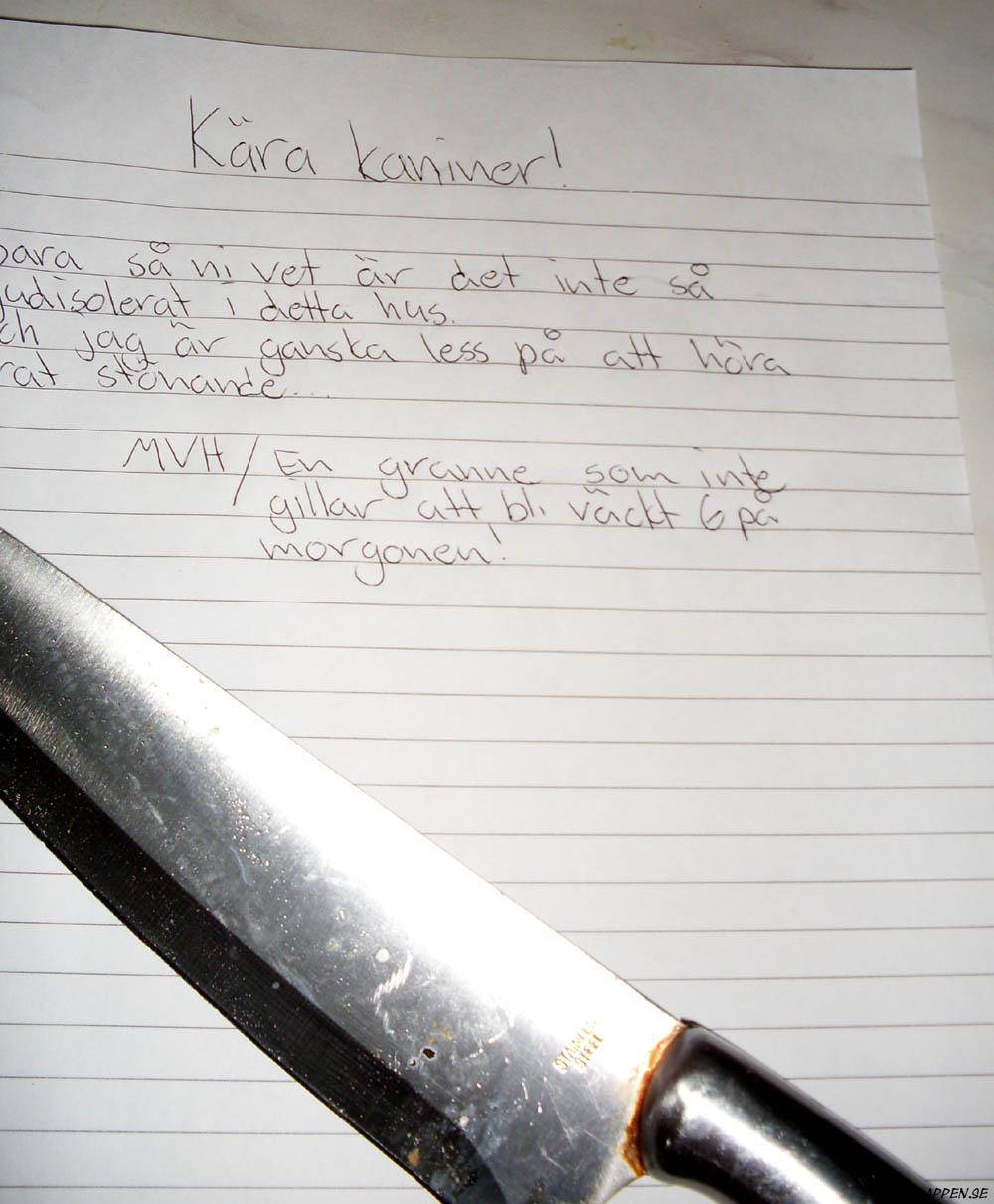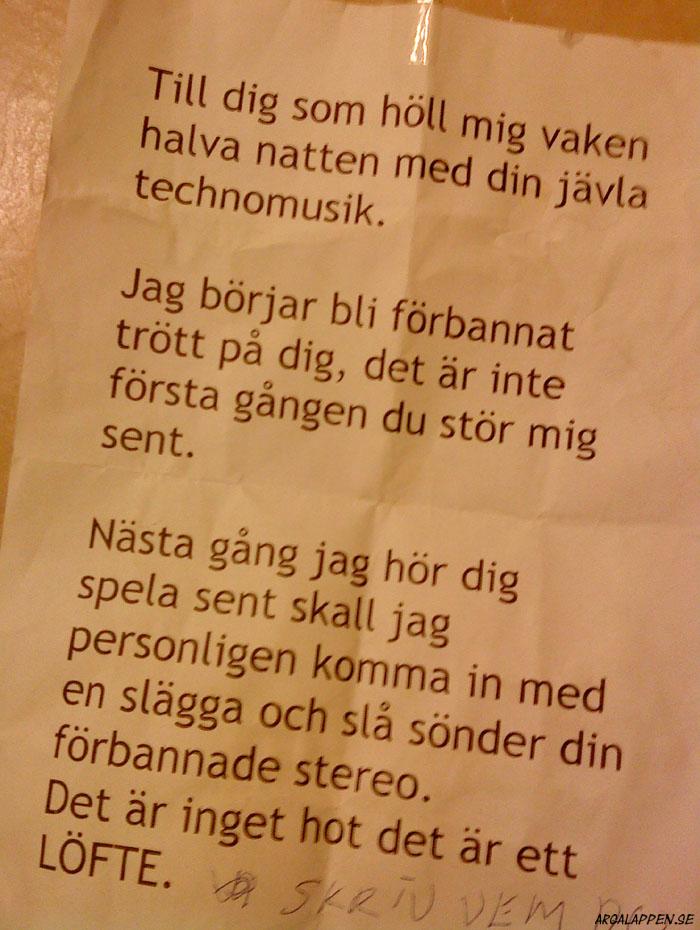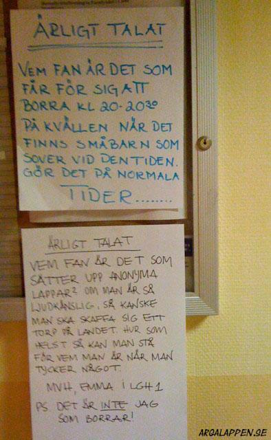 Hittad: I samma trapphus som lappen som publicerades 11:e Oktober. Roligt ställe...