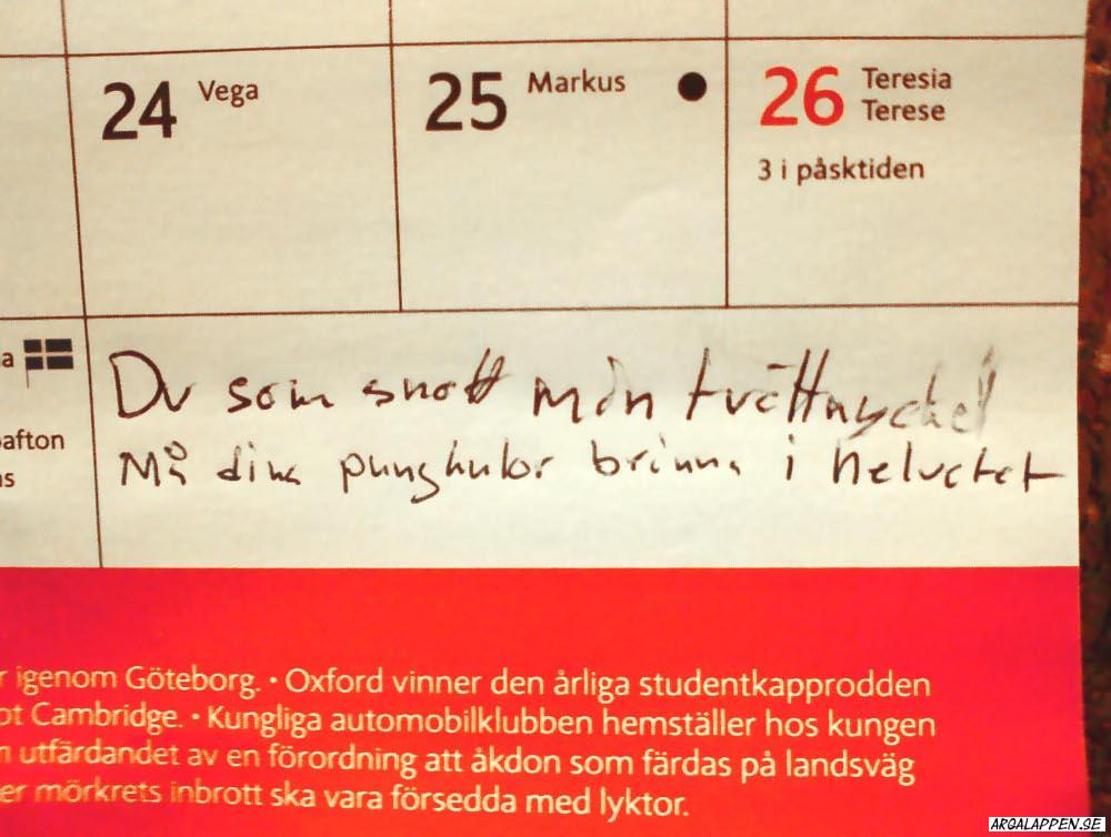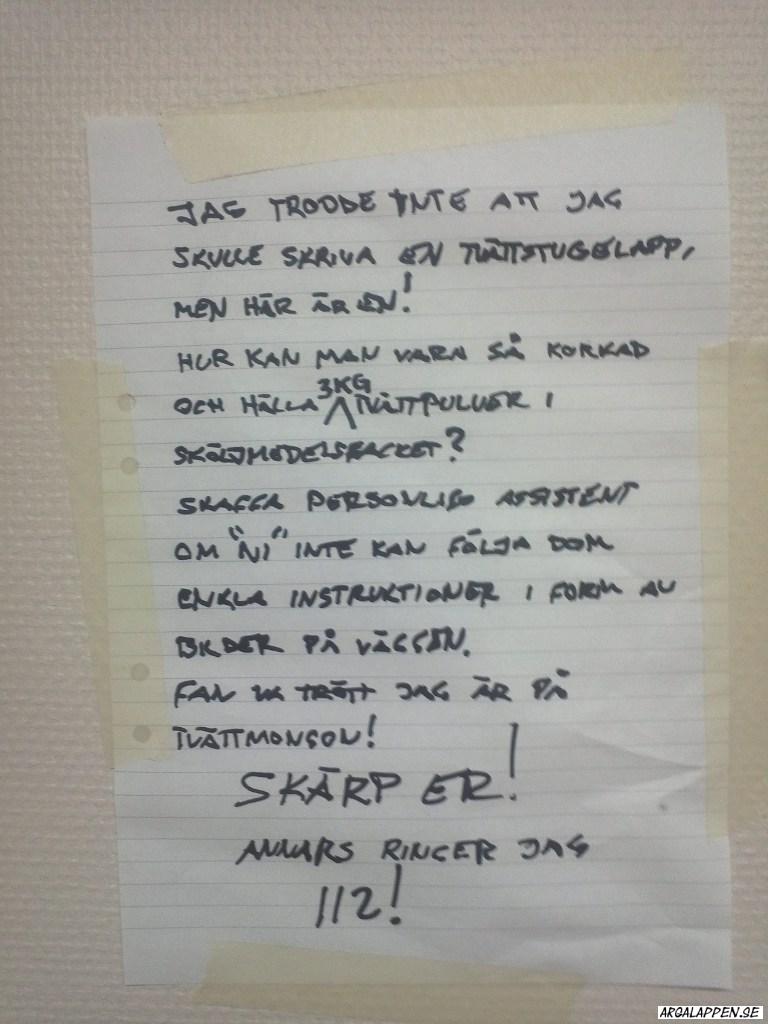 Arga Lappen är en blogg som frossar i de där små subtila budskapen vi människor kommunicerar med i köket, i förrådet, i tvättstugan, ja i princip överallt där vi delar utrymme och umgås (eller inte) med andra.