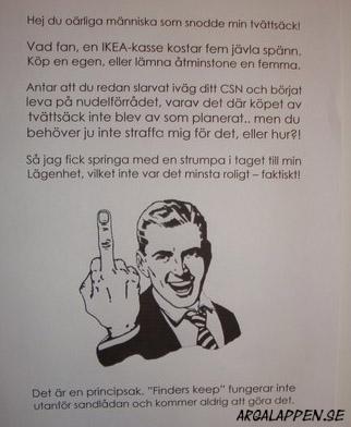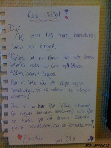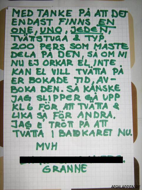 Arga Lappen är en blogg som frossar i de där små subtila budskapen vi människor kommunicerar med i köket, i förrådet, i tvättstugan, ja i princip överallt där vi delar utrymme och umgås (eller inte) med andra.