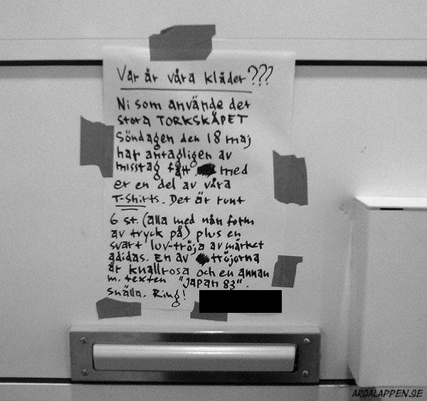 Arga Lappen är en blogg som frossar i de där små subtila budskapen vi människor kommunicerar med i köket, i förrådet, i tvättstugan, ja i princip överallt där vi delar utrymme och umgås (eller inte) med andra.